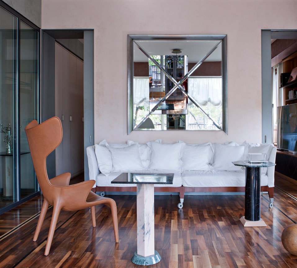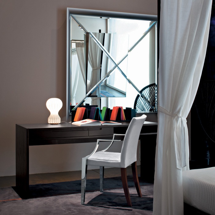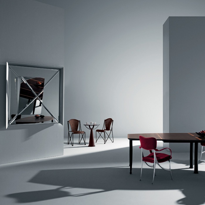 Mirror Osmond from the Italian manufacturer Driade. The mirror is made in aluminum frame. The Central part is pushed forward, which gives a similar effect. The square model, made in a modern style. Great designer addition to your interior.