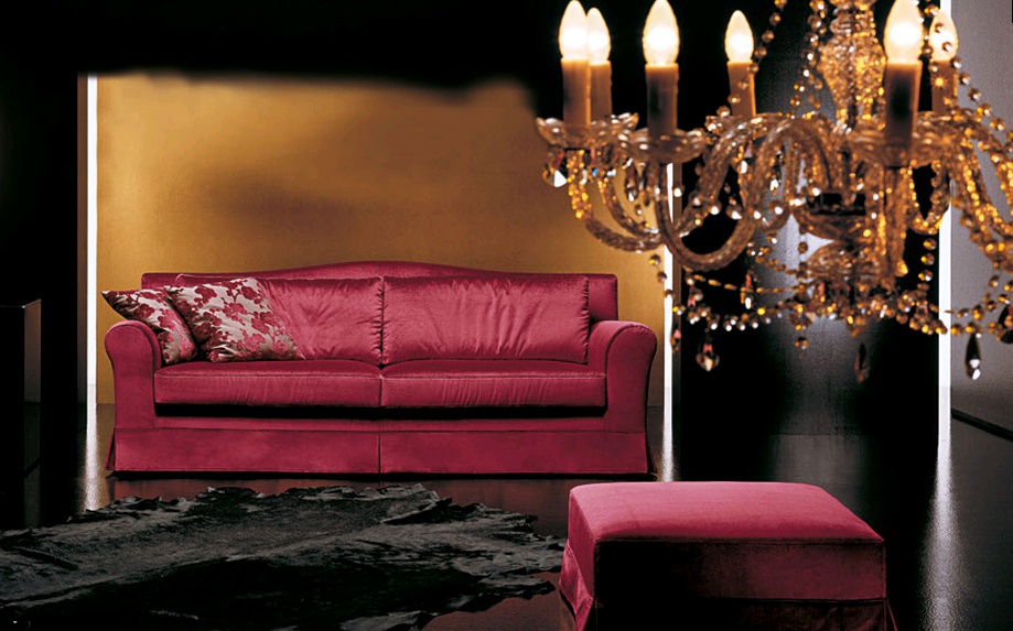 The Simon sofa from Italian manufacturer Formerin. The frame is made of wood. Upholstered in textile or leather from the company portfolio. Legs - wood. Colours - Burgundy. The design is complemented by the pillows. The model is made in modern style.