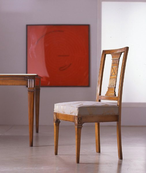 A chair from the Italian manufacturer Bizzotto. The frame is made from solid cherry. For upholstery, leather or textiles from the collection of the company. Colours in stock. Great addition for your dining room in a classic style.