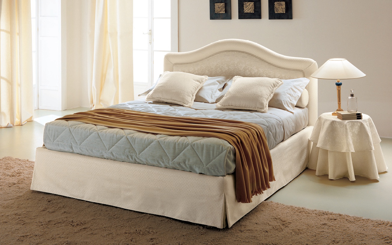 Mereta double bed by Italian manufacturer Bolzan. The frame and legs are made of solid wood. Upholstery textile. Offers a wide range of colors. The model is made in classic style. Bring flavor to any interior.
