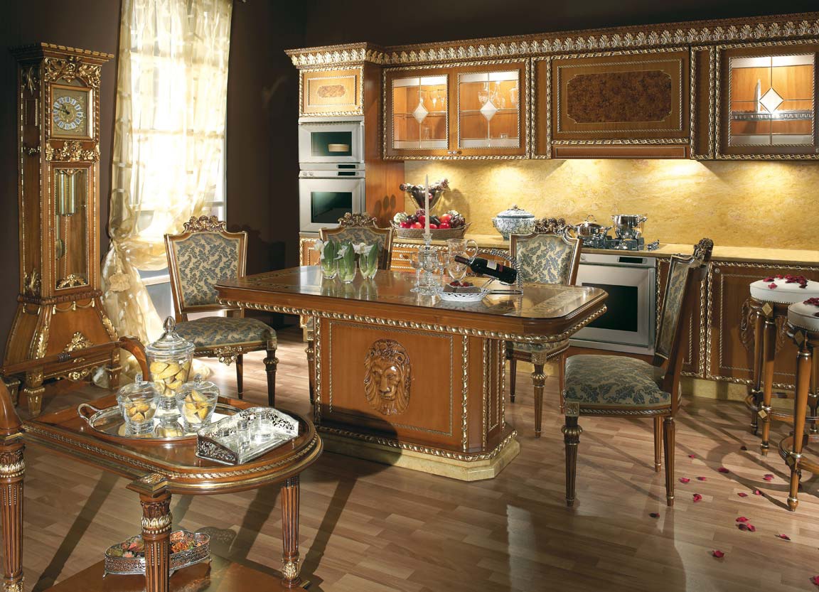 Kitchen (kitchen set) Emperor from the Italian manufacturer Asnaghi Interiors. Made from solid wood. Presents a model kitchen Cabinet, dining table and chairs. A style classic.