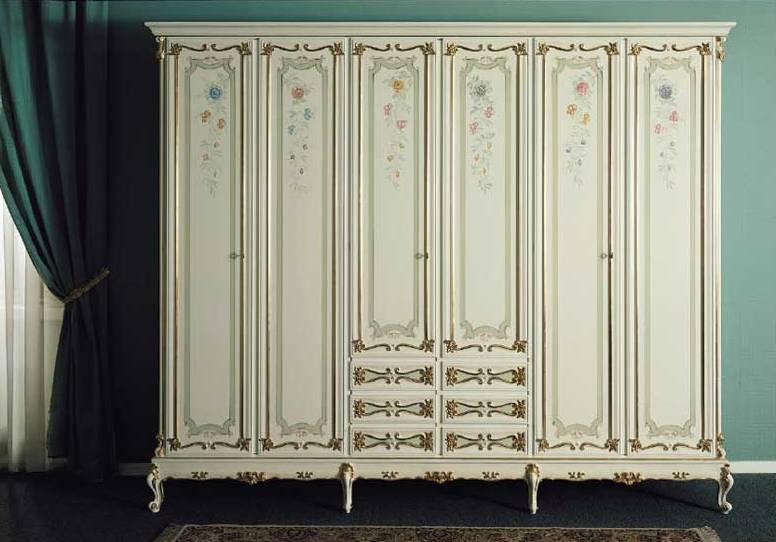 Wardrobe from the Italian manufacturer Asnaghi Interiors. The frame is made from solid wood. Decorative element serves as gold plated accessories pattern blue and pink colors. A style classic.