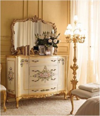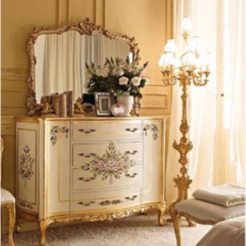 A chest of drawers from the Italian producer Andrea Fanfanii. The frame is made from solid wood. Model on a low figured legs with double doors, decorated with hand painted. Great choice for the bedroom in classic style.