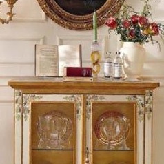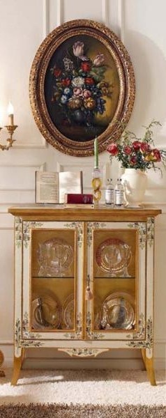 A chest of drawers from the Italian producer Andrea Fanfanii. The frame is made from solid wood. The paintings were done manually. The model with two glass doors. Great choice for the bedroom in classic style. Colours in stock.
