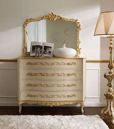 A chest of drawers from the Italian producer Andrea Fanfanii. The frame is made from solid wood. The paintings were done manually. The model with four drawers. Great choice for the bedroom in classic style. Colours in stock.