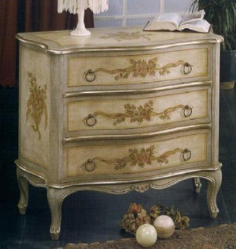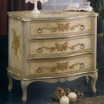 A chest of drawers from the Italian producer Andrea Fanfanii. The frame is made from solid wood. Model for small feet. The paintings were done manually. Model with three drawers with round metal handles. Great choice for the bedroom in classic style.