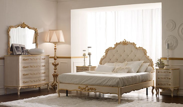 Headsets for bedrooms from Italian manufacturer Andrea Fanfani. Set includes double bed, chest of drawers, bedside tables. Frames made from solid wood. Set made in a classic style.