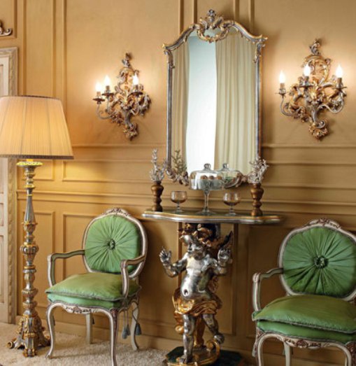 Console from the Italian producer Andrea Fanfani. The console on the original stem, figures of angels. Color console silver with gold plated elements. A style classic.