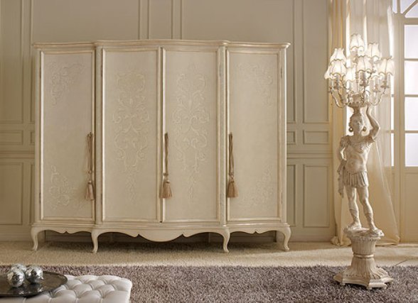 Wardrobe from the Italian producer Andrea Fanfani. Made from solid natural wood. Originality gives a carved wood handmade. Low Cabinet on figured legs. Colours in stock.