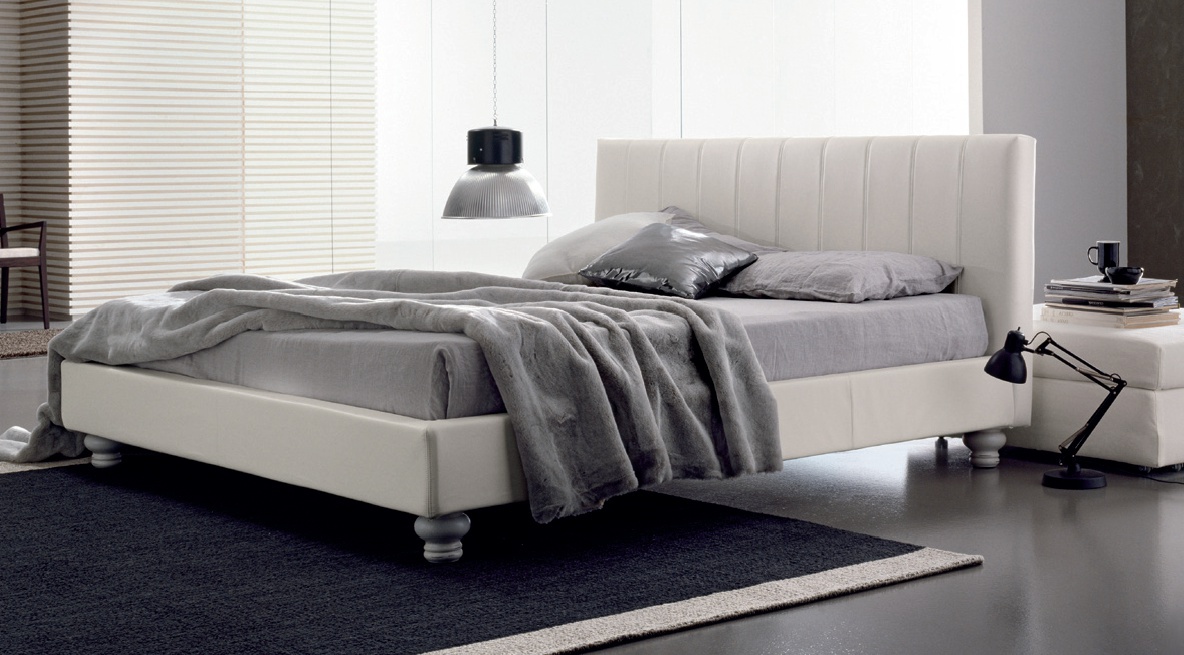 Komodo double bed by Italian manufacturer Bolzan. Model on figured legs. Material - solid wood. Offers a glossy finish or a matte varnish. The body and headboard can be upholstered in fabrics or leather from the collection company. Perfectly fits and will be a great decoration of your interior.