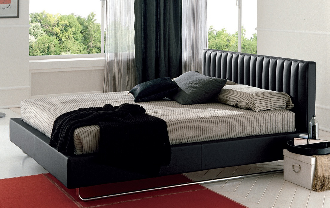 Maison double bed by Italian manufacturer Bolzan. The frame is made from solid wood. The legs are metal. The upholstery is leather. Colors to choose from the collection of the factory. The headboard is soft. Filler - polyurethane foam of different densities.