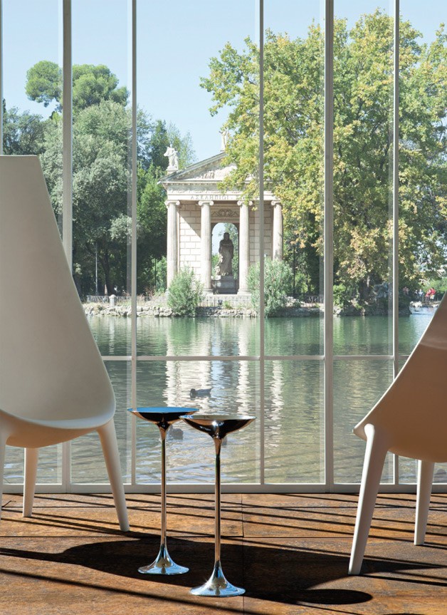 A small table-stand Ping I and II from Italian manufacturer Driade. The frame is made of polished aluminum. Designer addition to your interior in a modern style.