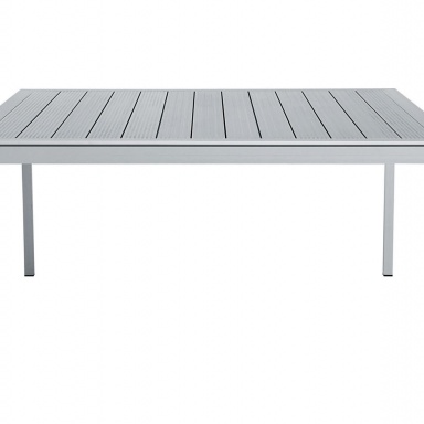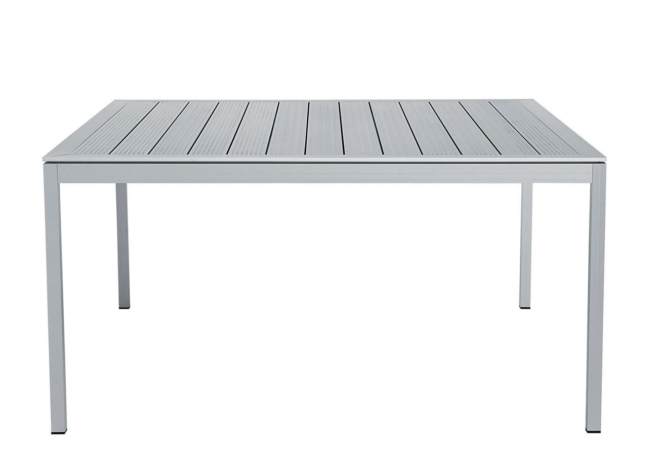 Dining table Driade Tikka production. The aluminum frame of the table. Countertop square or rectangular of different sizes. Worktop can be made of aluminum, mahogany, white or black tempered glass. The model is made in modern style. Aluminum version of the table can be used as street furniture.
