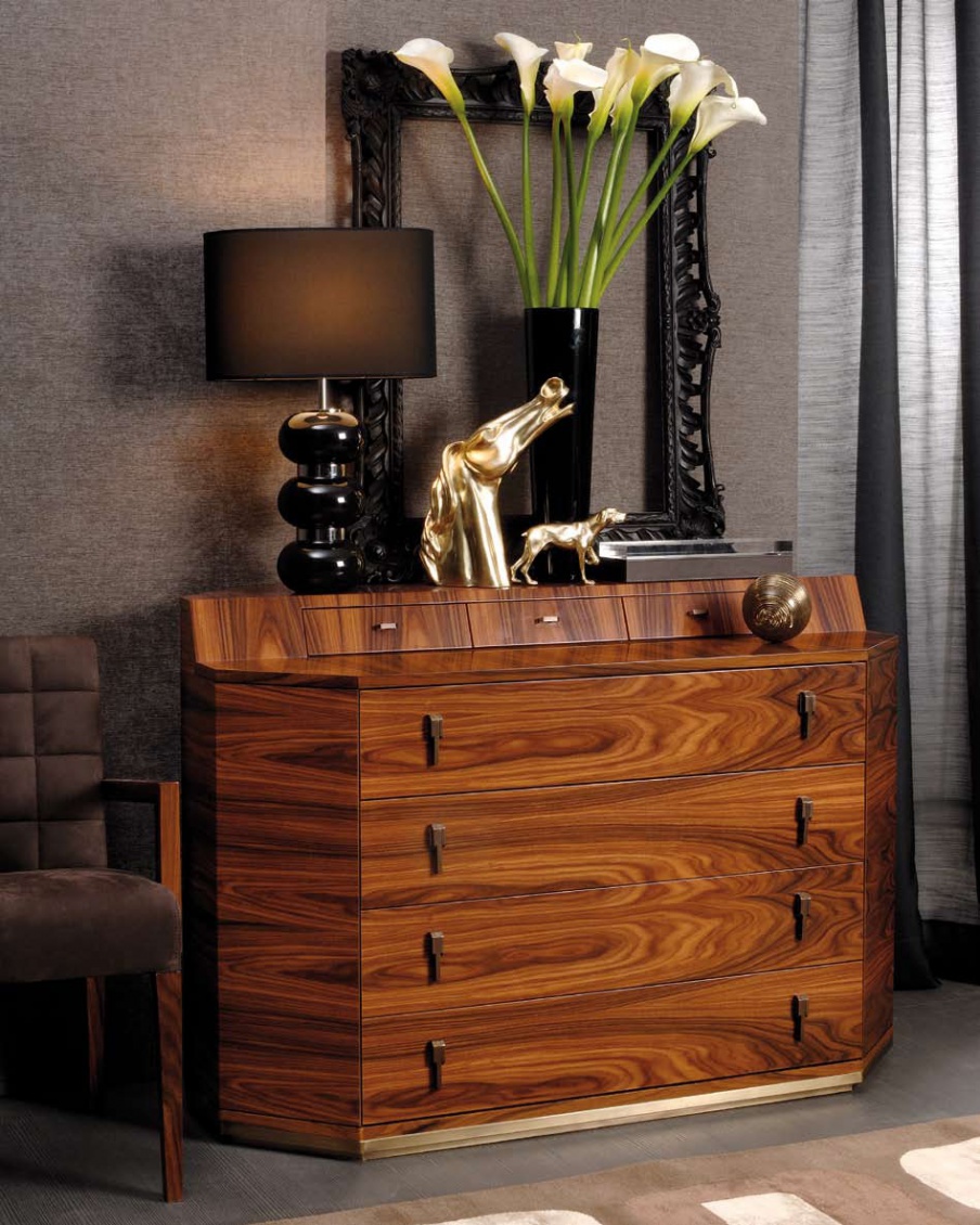 The Manhattan chest of drawers Italian manufacturer MOBILIDEA. Made of sturdy solid wood, dark color. Base metal
