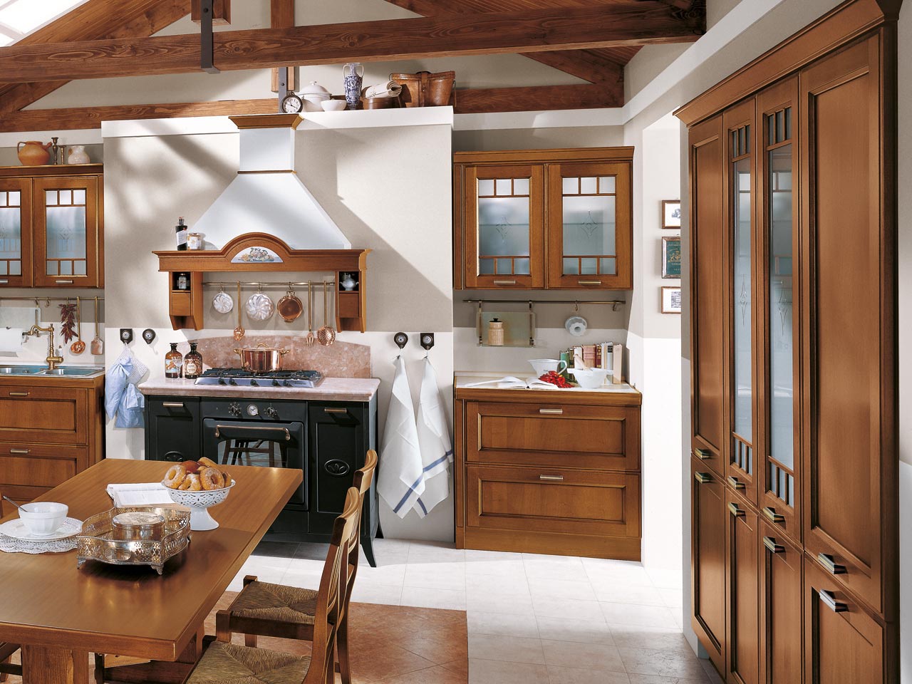Set for the kitchen from Italian manufacturer Cucine LUBE. Frame of furniture is made of wood. Cabinet doors can made from timber or glass. The massive handle is made of metal. Offers a wide choice of finishes. Available built-in lighting and extractor fan. Set made in a classic style.