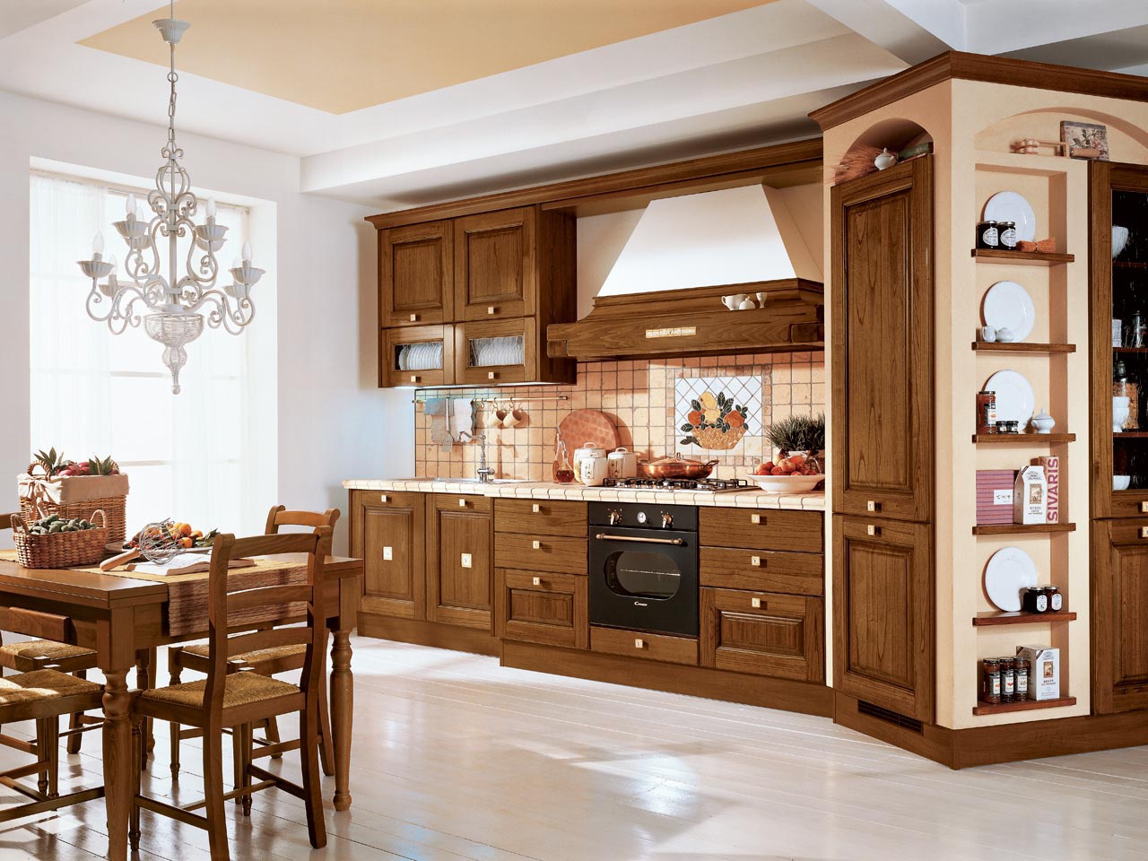 Set for the kitchen from Italian manufacturer Cucine LUBE. The frame is made of natural wood. Cabinet doors made from wood. Proposed built hoods. Set made in a classic style.