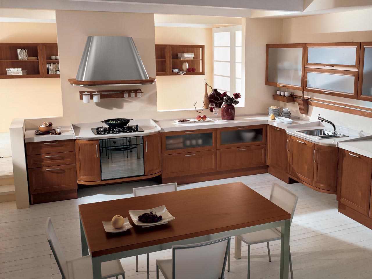 Set for the kitchen from Italian manufacturer Cucine LUBE. The furniture is made of natural wood. The color of the headset in natural wood. The perfect solution for the modern interior of your kitchen.
