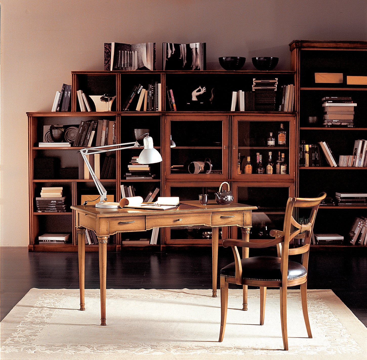 The table from the Italian manufacturer Bizzotto. The frame of the table is made of solid wood, the tabletop is trimmed in natural leather colours to choose from the range of the manufacturer. Additionally, on the sides of the table top has pull-out wooden shelves. Friendly Desk suitable as a working Desk and will fit perfectly into the interior as a home office or office in a classic style.