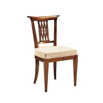 5163 chair from the Italian manufacturer Morelato. The frame is made from solid wood, upholstery - textiles from a range of campaigns. The model with an open carved back. A pretty choice for interiors in classical style. Colors: natural wood color, white.
