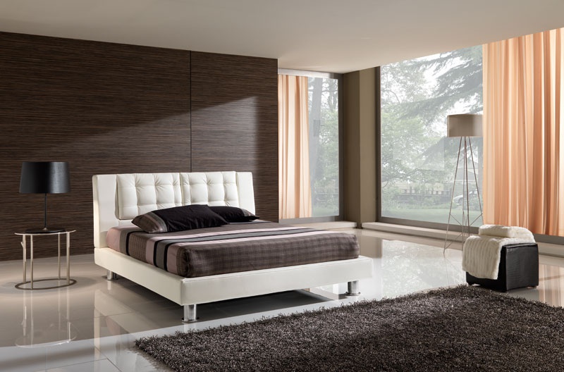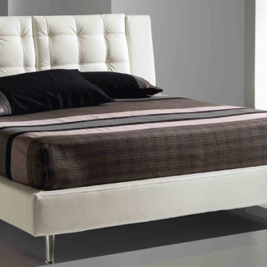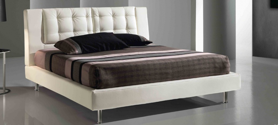 Fashion double bed from Italian manufacturer Essepi. The frame is made of wood on low metal legs. Upholstered in leather white color. Model with low upholstered headboard. A good choice for the bedroom in modern style.