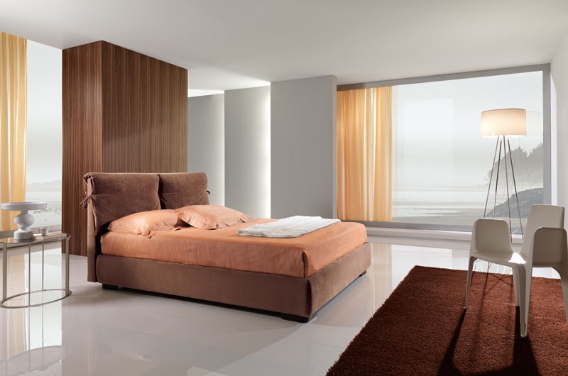 Double bed from Italian manufacturer Essepi. The frame is made of wood, filler - polyurethane foam. Upholstery made of high quality velour brown. The modern style of execution.