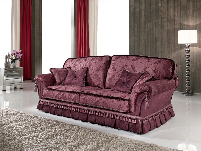 The Anthony sofa from Italian manufacturer Essepi. The frame is made of wood. Upholstery - textiles from the company portfolio. Legs - wood. Colors - red. The armrests are slightly wrapped. The model is decorated with textile edging and tassels. The model is made in classic style.