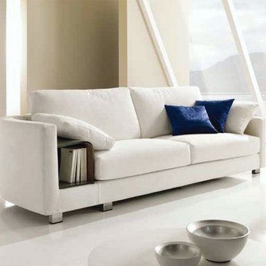 Drink sofa from Italian manufacturer Essepi. The frame is made of wood. Upholstery - textiles from the company portfolio. Legs - metal. Color scheme - white. A sofa complemented with a shelf for books. The model is made in modern style.