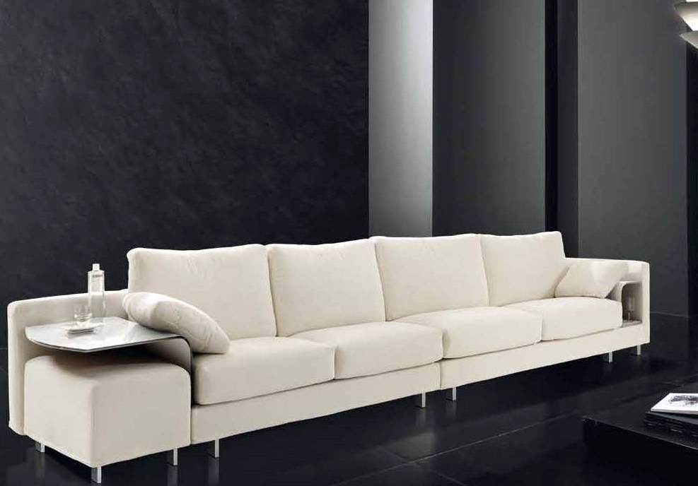 Drink sofa from Italian manufacturer Essepi. The frame is made of wood. Upholstery - textiles from the company portfolio. Legs - metal. Color scheme - white. A sofa complemented with a coffee table and a shelf for books. The model is made in modern style.