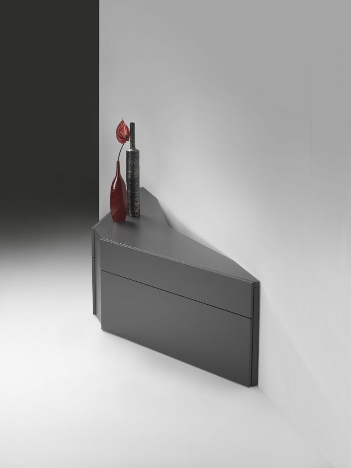 Stand from Italian manufacturer Klab Design. The Cabinet of triangular shape made of wood. From the manufacturer color is black. The perfect solution for modern interior.