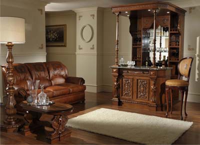 Bar from the Italian manufacturer Bezziccheri. Includes sections with hinged doors, shelves and rack bar. The body is made of solid wood. There are several options for finishing. The Cabinet is made in classic style.