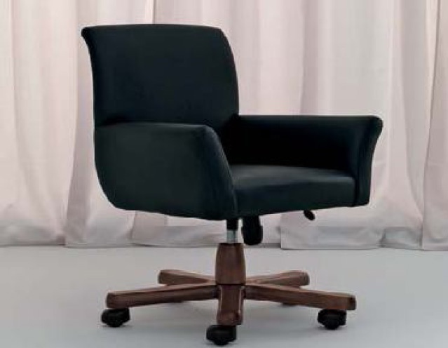 A chair from the Italian manufacturer Bruno Piombini. The frame and legs are made of solid wood. Five-way base supplemented wheels. Seat and back are covered with black textile. The internal content is not deformable polyurethane foam. The model is made in a modern style.