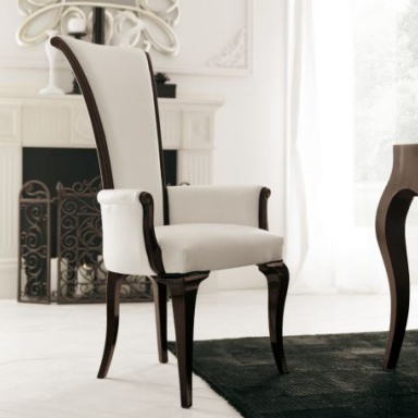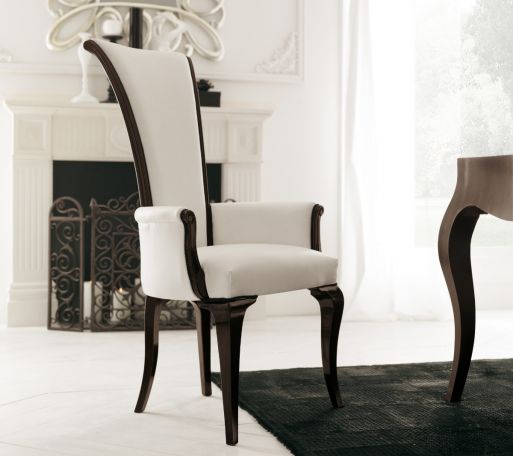 Chair with high back and armrests from the Italian manufacturer Avenanti. The frame is made of wood. Color scheme in white.