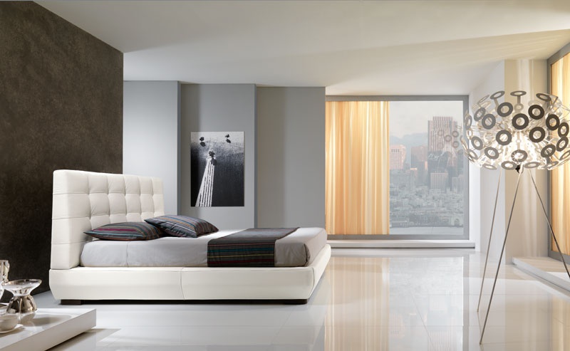 Double bed Milu, from the Italian manufacturer Essepi. The frame is made of drevesiny. Color scheme - white. The headboard is tall and upholstered, with padding the Kapton. The model is made in modern style.