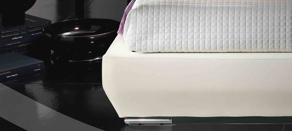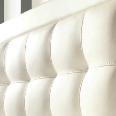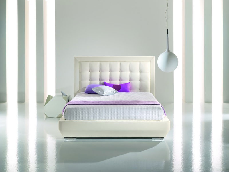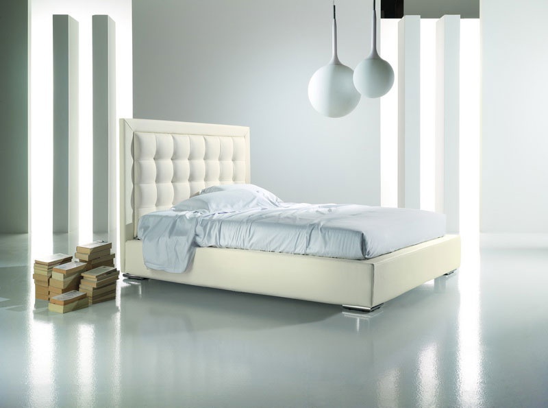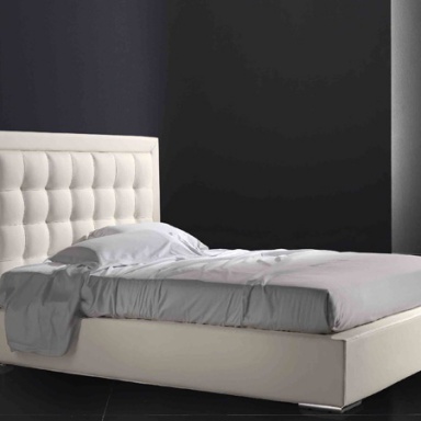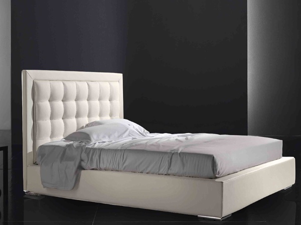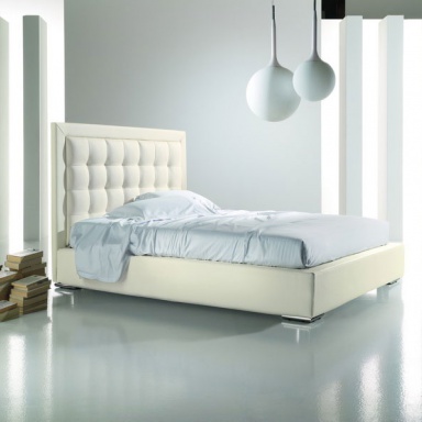 Queen from the Italian manufacturer Essepi. The frame is made of wood. Color scheme - white. The headboard is tall and upholstered, with padding Capito. The legs are made of wood. Finish - lacquer silver color. The model is made in modern style.