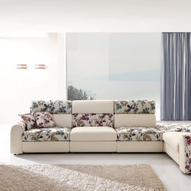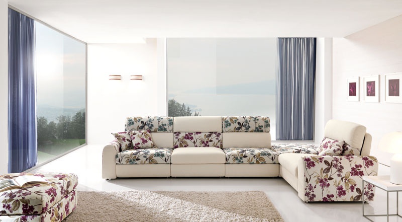 Corner sofa Remix, from the Italian manufacturer Essepi. The frame is made of wood. Upholstery - textiles from the company portfolio. Legs - metal. Colors - white and flower ornament. The armrests are square. The model is made in modern style.