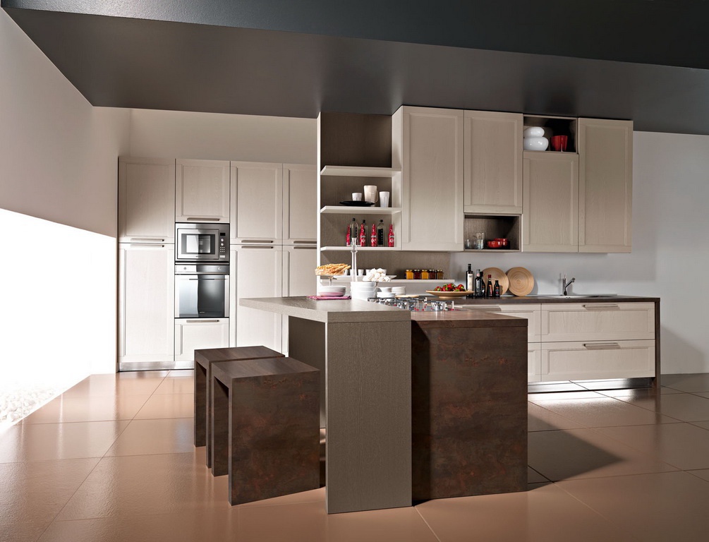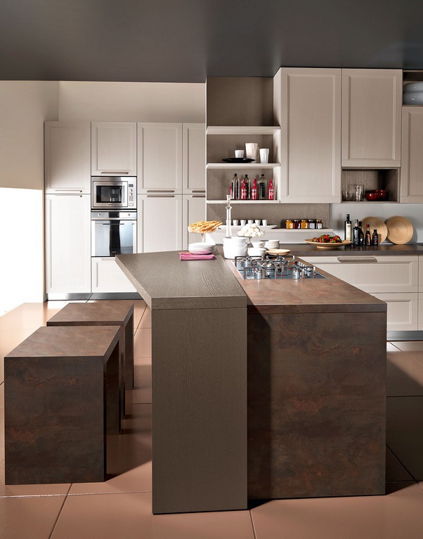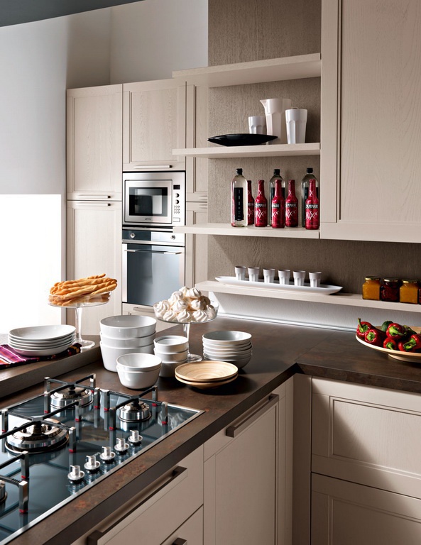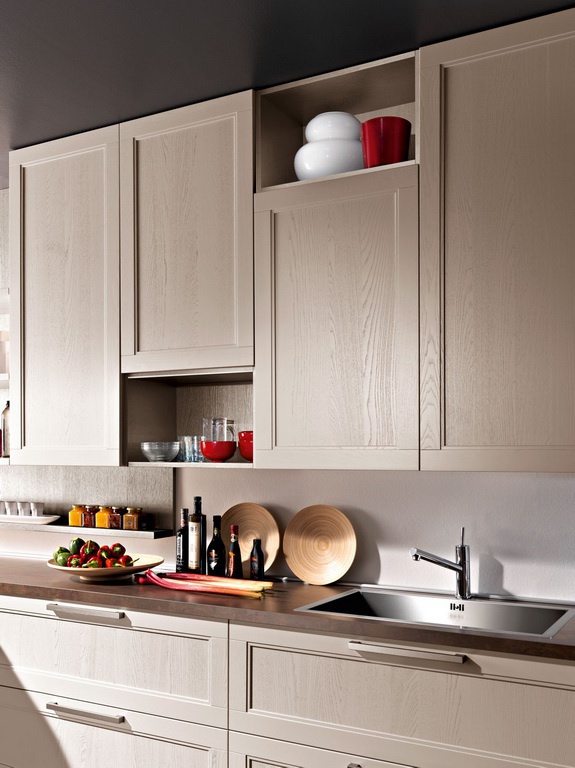 Set for the kitchen from Italian manufacturer Astra. The furniture is made of solid wood. The surface is treated with varnish from the range of the campaign. Equipped with wing lockers and drawers. The color combination of milk and brown tones. Set is made in modern style.