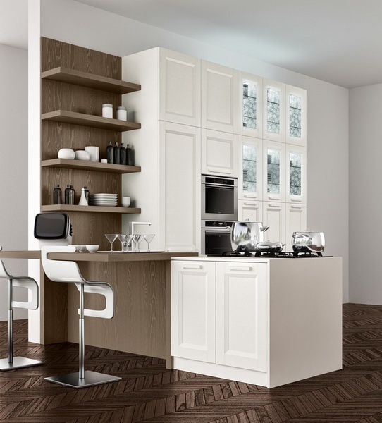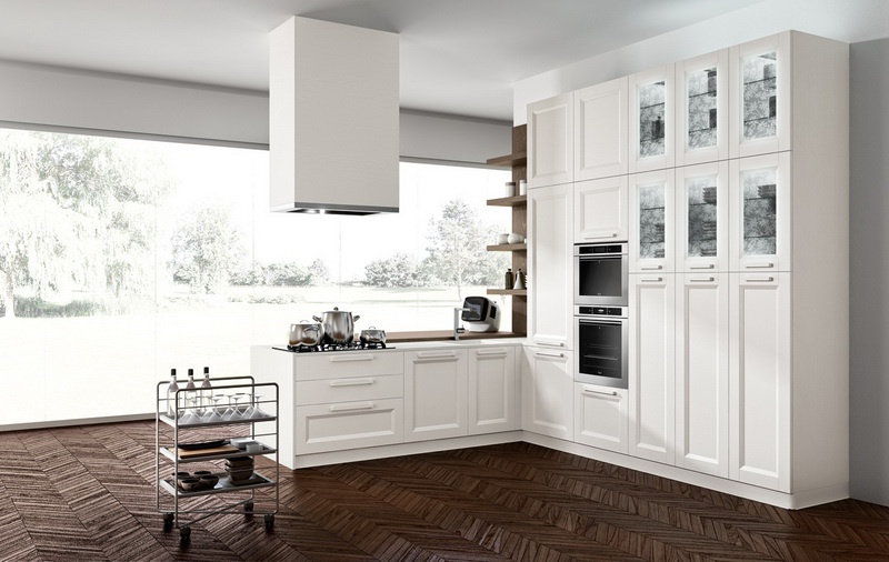 Set for the kitchen from Italian manufacturer Astra. The furniture is made of solid wood. The surface is treated with varnish from the range of the campaign. Color in a milky tone. Set is made in modern style.
