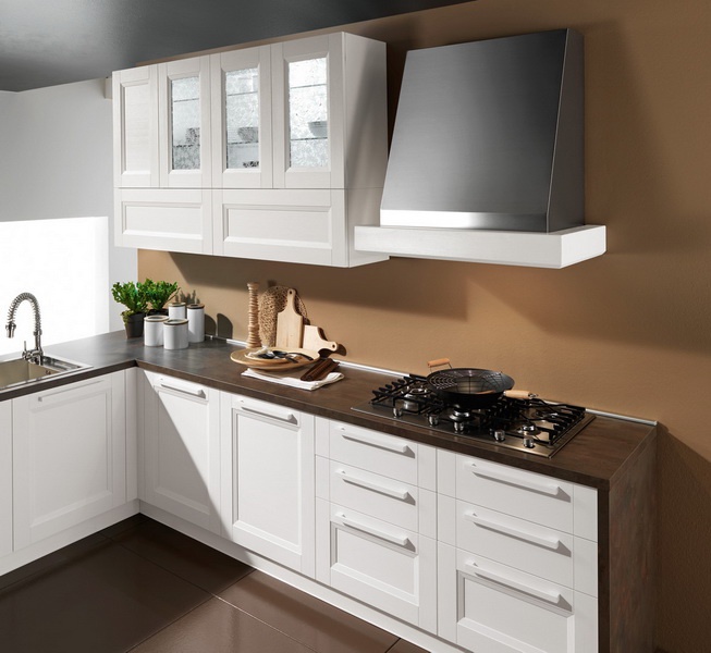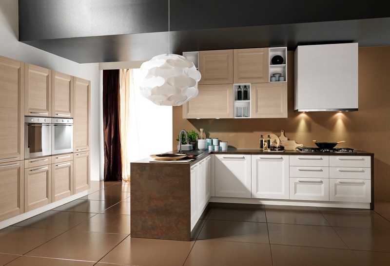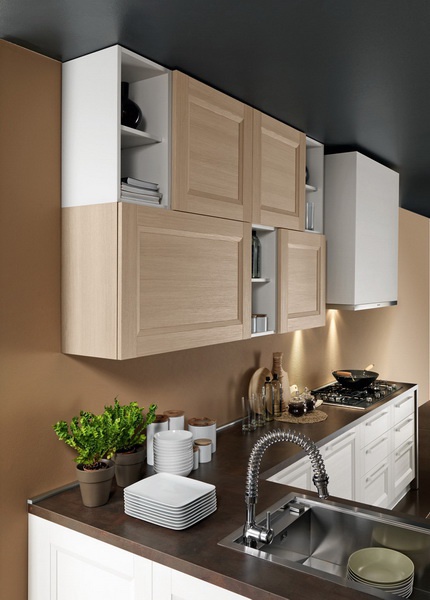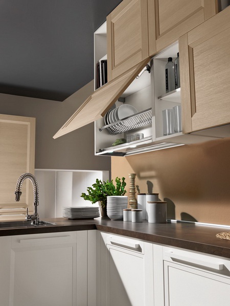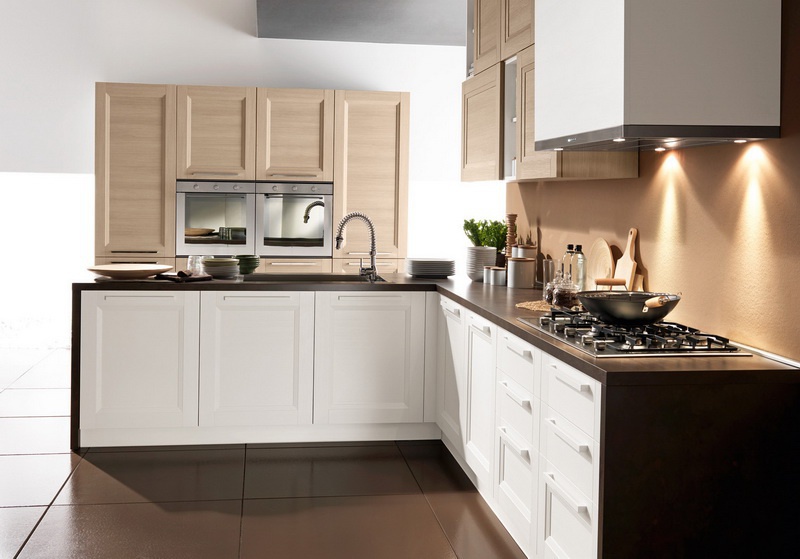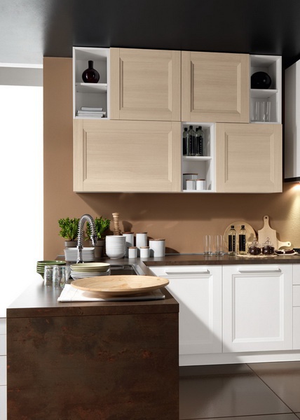 Set for the kitchen from Italian manufacturer Astra. The furniture is made of solid wood. The surface is treated with varnish from the range of the campaign. Color scheme in the combination of colors, light natural wood, white and brown. Set is made in modern style.