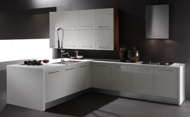 Set for the kitchen from Italian manufacturer Astra. Frame of furniture is made of wood, handle made of metal. The kitchen is corner mounted and floor lockers closed. Color scheme in white color. Set is made in modern style.