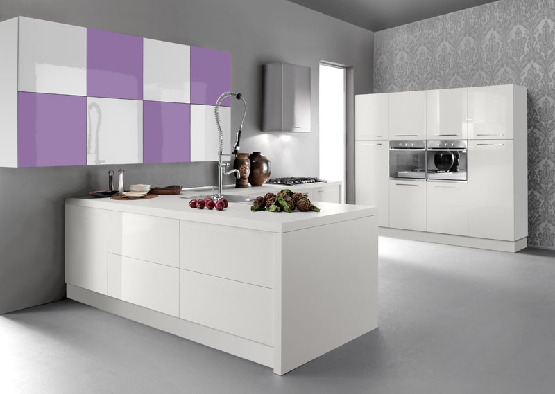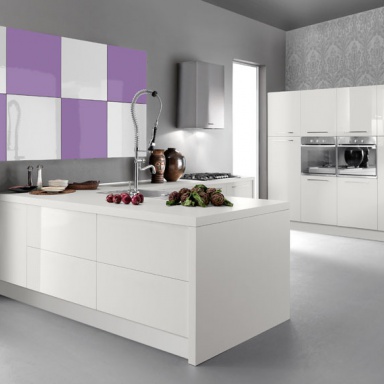 Set for the kitchen from Italian manufacturer Astra. The frame is made from solid wood. The surface of the furniture is treated with varnish from the range of the campaign. Set is made in white with purple accents. The furniture is made in modern style.