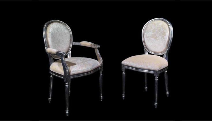 Chair in upholstery Louis from the Italian manufacturer Epoque. The frame is made of wood. Upholstery - textiles from the company portfolio. The model will perfectly complement the classic interior of dining room.