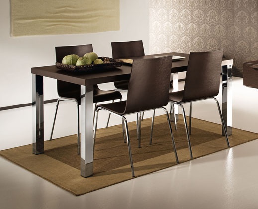 Dining sets from the Italian manufacturer Astra. The presented model dining table and chairs with high backs. The frame is made from solid wood and metal. Color steel with brown. Set is made in modern style.