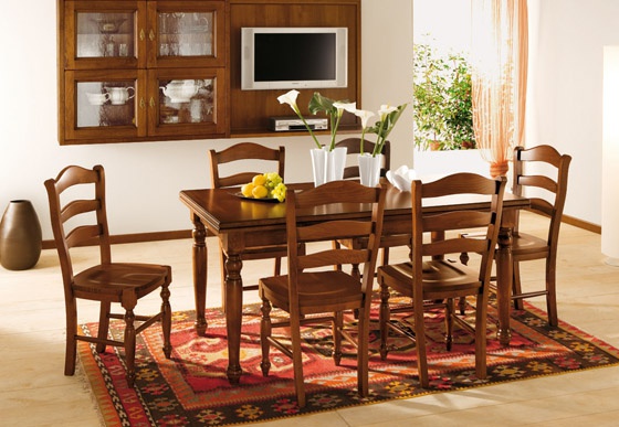 Set for the dining room from Italian manufacturer Astra. The presented model dining table and chairs. Set is made of solid wood. Model color natural wood, the surface is treated with lacquer. The modern style of execution.