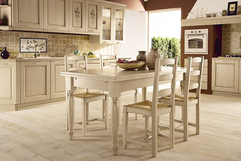 Set for the dining room from Italian manufacturer Astra. The frame is made from solid wood in a light tone. The presented model dining table and chairs. Set is made in modern style.