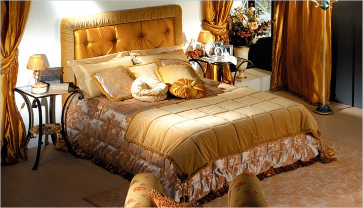 Double bed Tassilo, from the Italian manufacturer Epoque. The frame is made of drevesiny. Colors - beige, brown. Headboard - soft. The model is made in modern style.