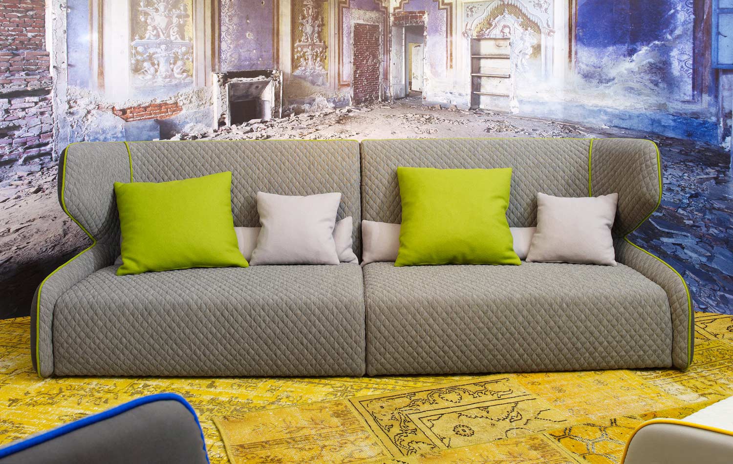 Sofa Egos from the French manufacturer Roche Bobois. Presents a model of modular sofa with a high back with curved edges. Textile upholstery is offered from the collection company. The filler is not deformed. Complement the design of decorative pillows and cushions. The modern style of execution.