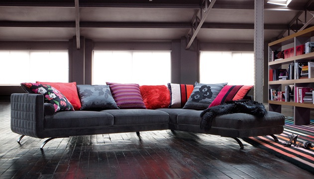 Sofa-In-Love from the French manufacturer Roche Bobois. Textile upholstery is offered from the collection company. The filler is not deformed. Complement the design of decorative pillows. The modern style of execution.
