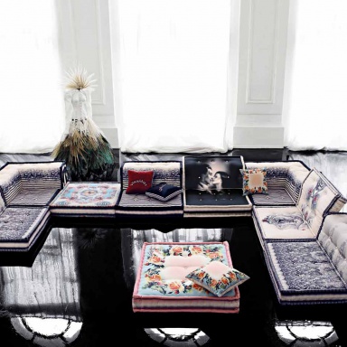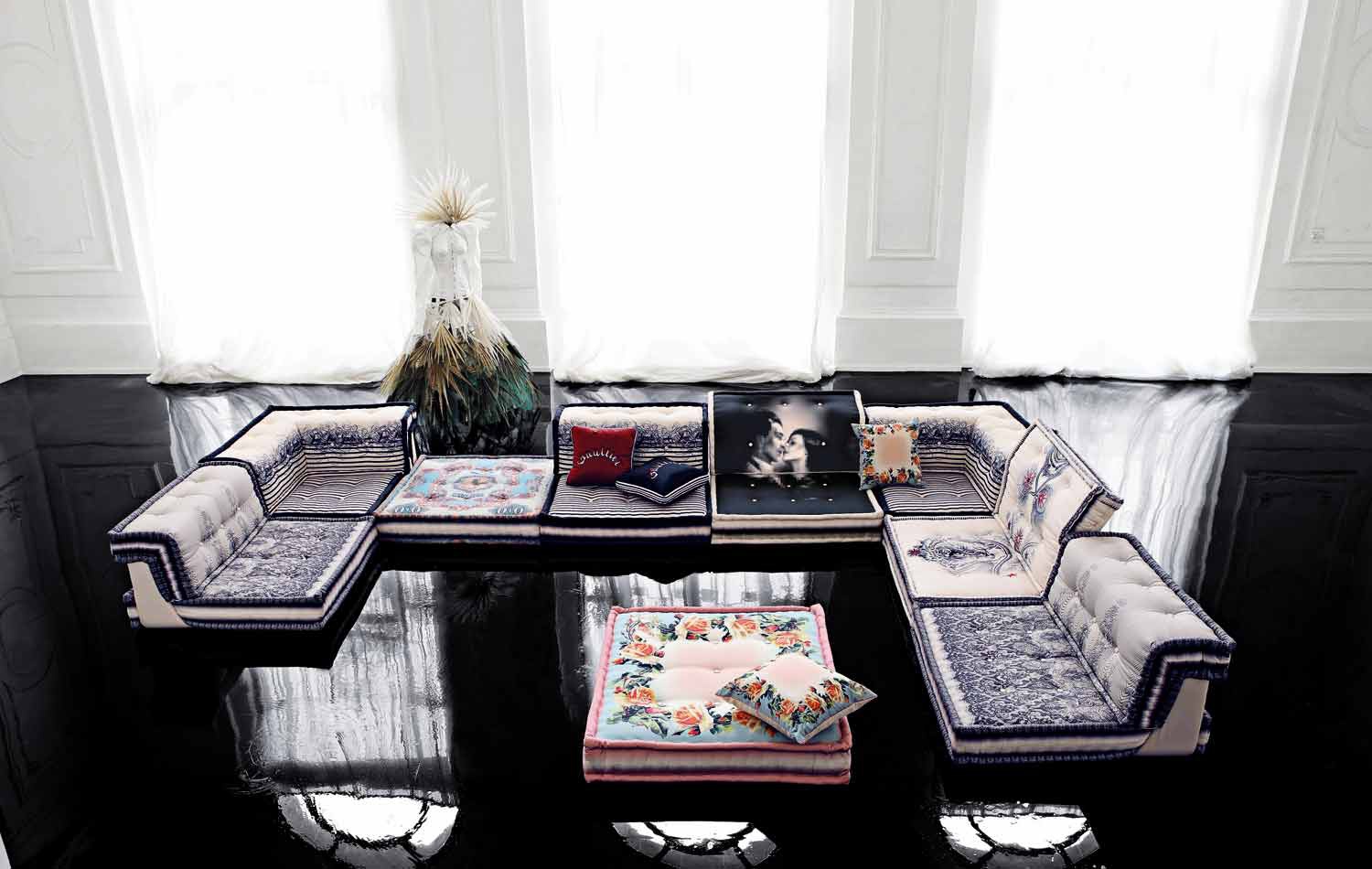 Sofa Mah-Jong from the French manufacturer Roche Bobois. The presented model of sofa in fabric from the collection company. The filler is not deformed. Complement the design of decorative pillows. The modern style of execution.