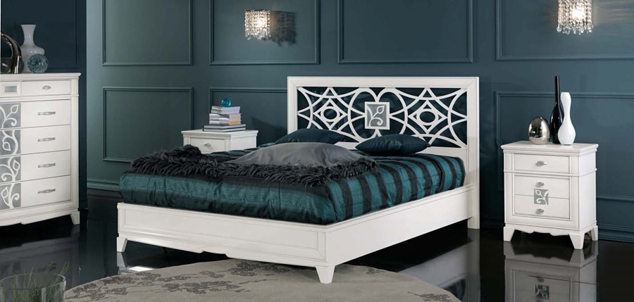 Double bed from Italian manufacturer Marchetti. Bed with low headboard and footboard. The frame is made of solid walnut. Color scheme in white. A style classic.