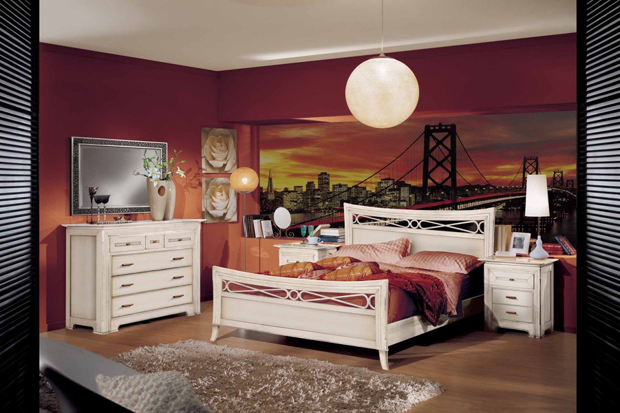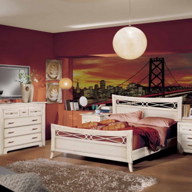 Headsets for bedrooms from Italian manufacturer Marchetti. The presented model has a double bed with headboard and footboard, bedside tables and chest of drawers. Bed with low headboard and footboard. Dresser with drawers. The frame is made of solid walnut. Color scheme in white. A style classic.